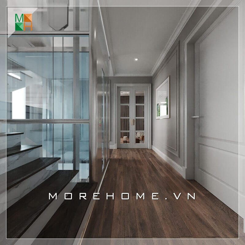 Thiết kế thang máy biệt thự vật liệu chính là kính giúp tạo cảm giác thoải mái và rộng rãi hơn.