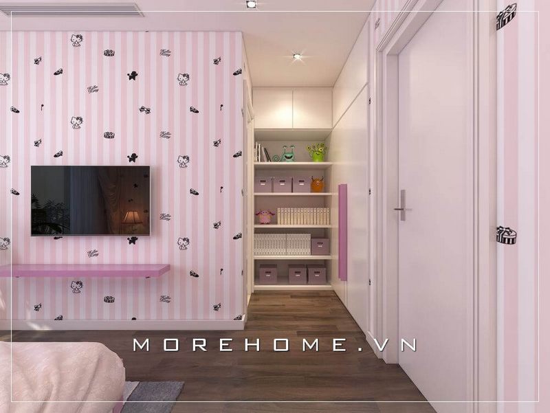 Mẫu thiết kế nội thất phòng ngủ cao cấp với cách bố trí nội thất một cách hợp lí, khoa học mang đến sự nhẹ nhàng, dễ thương với tone màu hồng cho phòng ngủ của bé gái