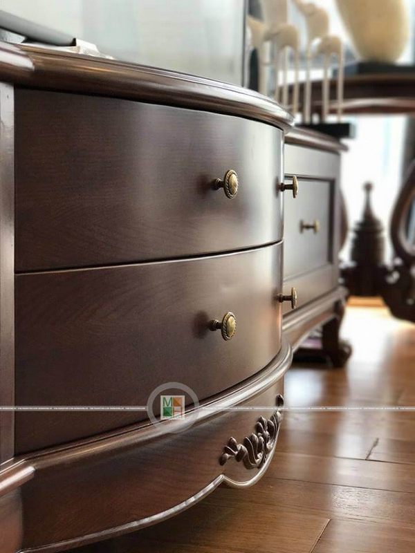 Ecopark đã hoàn thành với một mẫu kệ tivi gỗ óc chó tân cổ điển sang trọng.