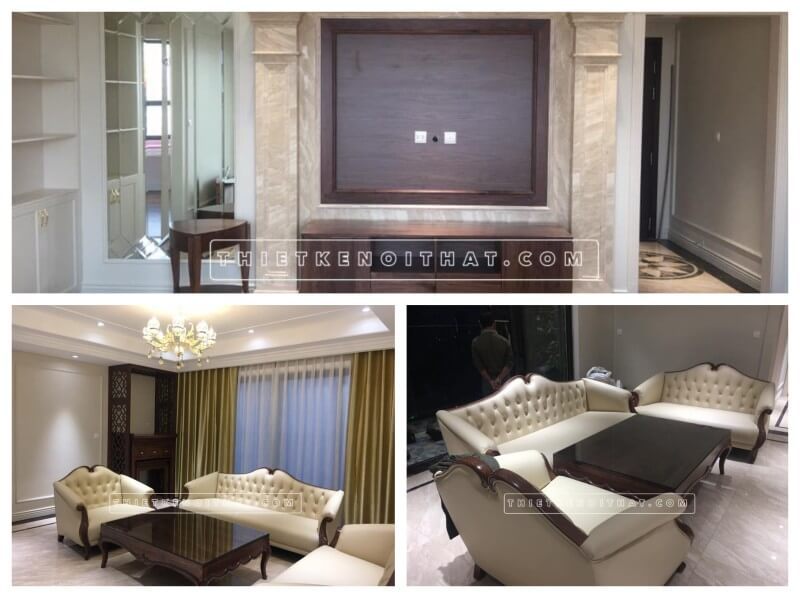 Hình ảnh của công trình thi công nội thất phòng khách chung cư D'capital tổng hợp những phong cách tân cổ điển và sang trọng.